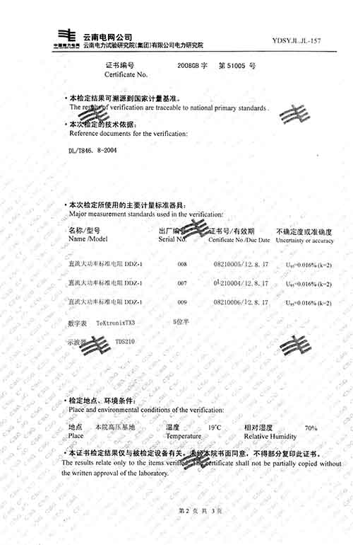 企業產品嚴格按照國際、國家標準及行業規程生產,通過國家、各省級、市級電力研究所、計量中心及電力權威部門的檢測,全面通過ISO9001國際質量管理體系認證。