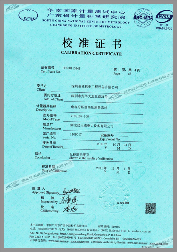 上一篇:YTC8106系列交直流分壓器鑒定證書 下一篇:YTC8750B互感器伏安變比極性綜合測試儀鑒定證書